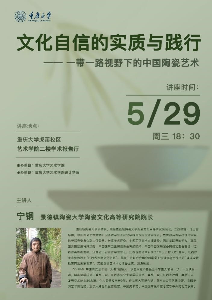 2024年5月29日晚上6点30分,由网上赌场-网赌平台-网赌网站 主办、网上赌场 设计学系承办的学术讲座《文化自信的实质与践行——一带一路视野下的中国陶瓷艺术》在网上赌场 二楼学术报告厅顺利举行。此次讲座邀请了景德镇陶瓷大学原校长、陶瓷文化高等研究院院长、博士生导师宁钢教授作为主讲人,由网上赌场 雒三桂教授主持。网上赌场 部分教师、研究生及本科生参加了此次讲座。宁钢教授聚焦于中国传统艺术瑰宝的传承与文化自信的理念,深入探讨...